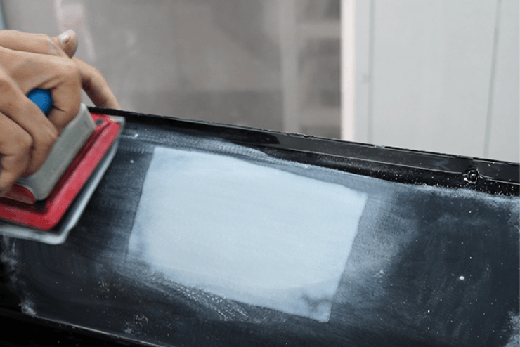 Aplique la imprimación y deje secar completamente. Lije hasta obtener una superficie lisa con lija de grano P400–P600 y, finalmente, termine con un lijado en seco con grano P2000.